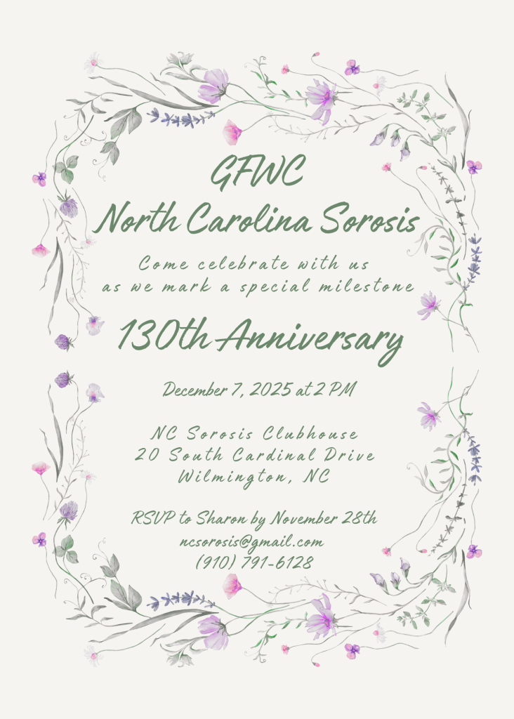 - North Carolina Sorosis (NCS) Day members meet for business, program and luncheon at 10:30 am on the third Thursday of each month, with the exception of June, July and August.
