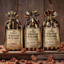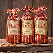 Fresh Shelled Pecan Halves (16oz, $15) – Milk Chocolate Covered (12oz, $14) – Glazed (8oz, $13) – Roasted & Salted (12oz, $13)